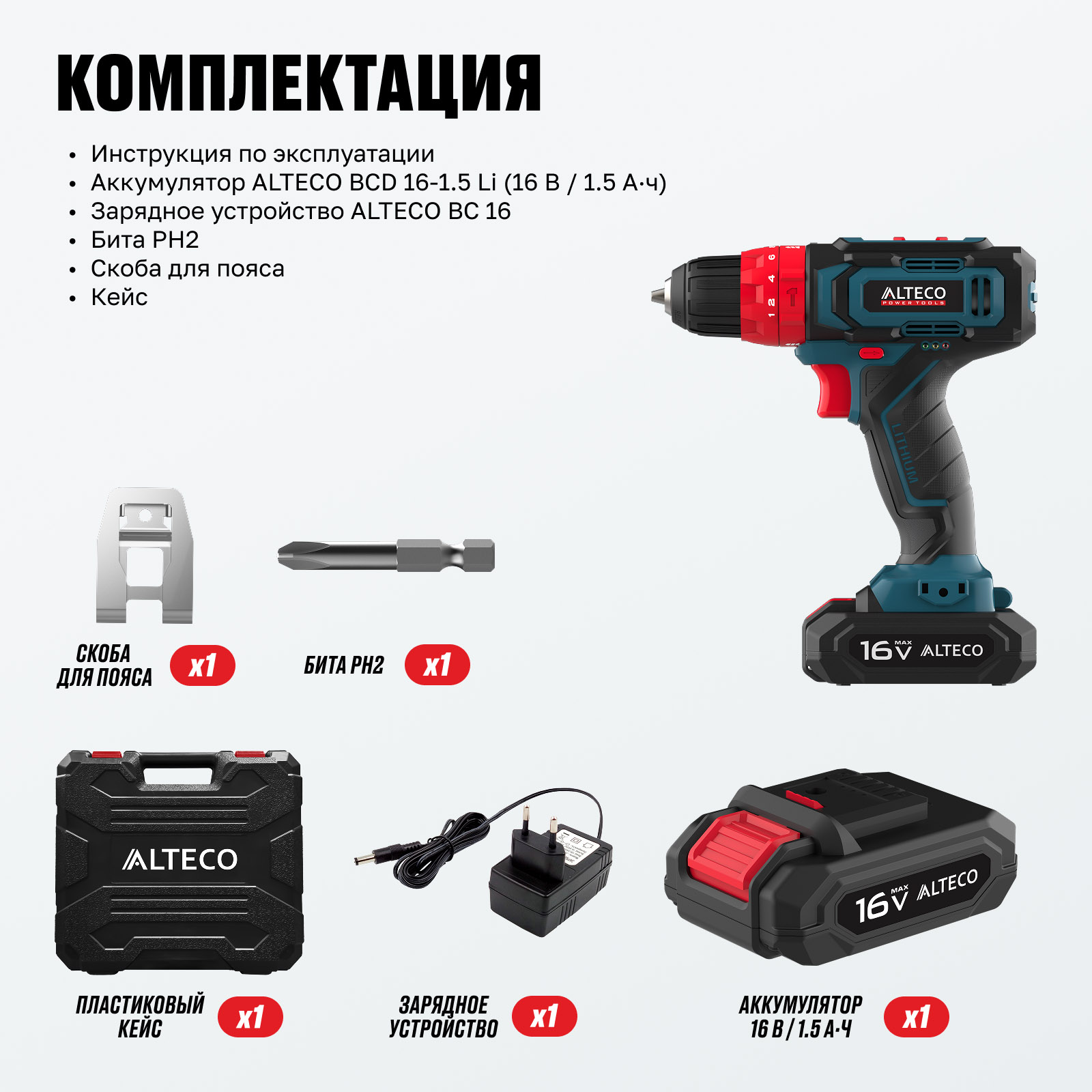 - Аккумулятор ALTECO BCD 16-1.5 Li (16 В / 1.5 А·ч) × 1 шт