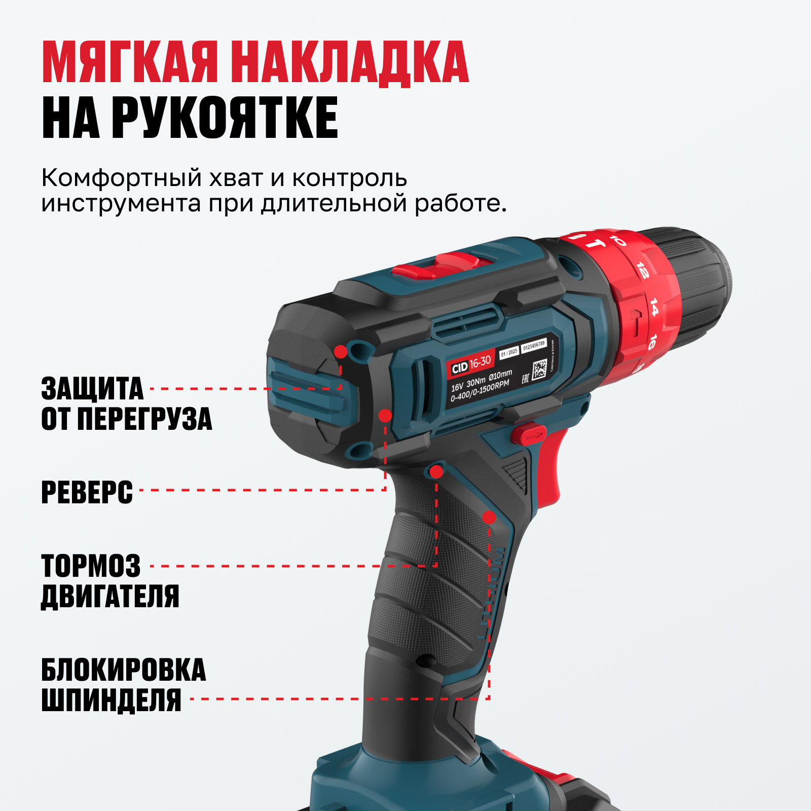 - Мягкая накладка задней рукояти – комфортный хват и контроль инструмента при длительной работе.