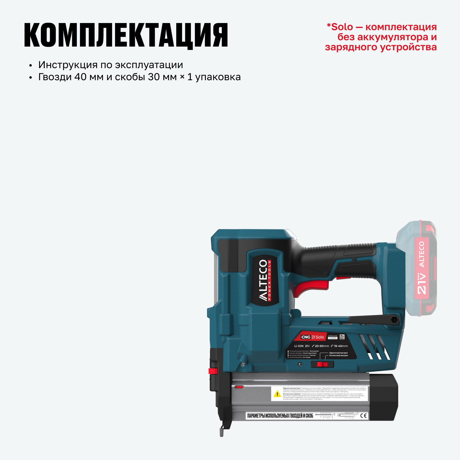 *Solo — комплектация без аккумулятора и зарядного устройства