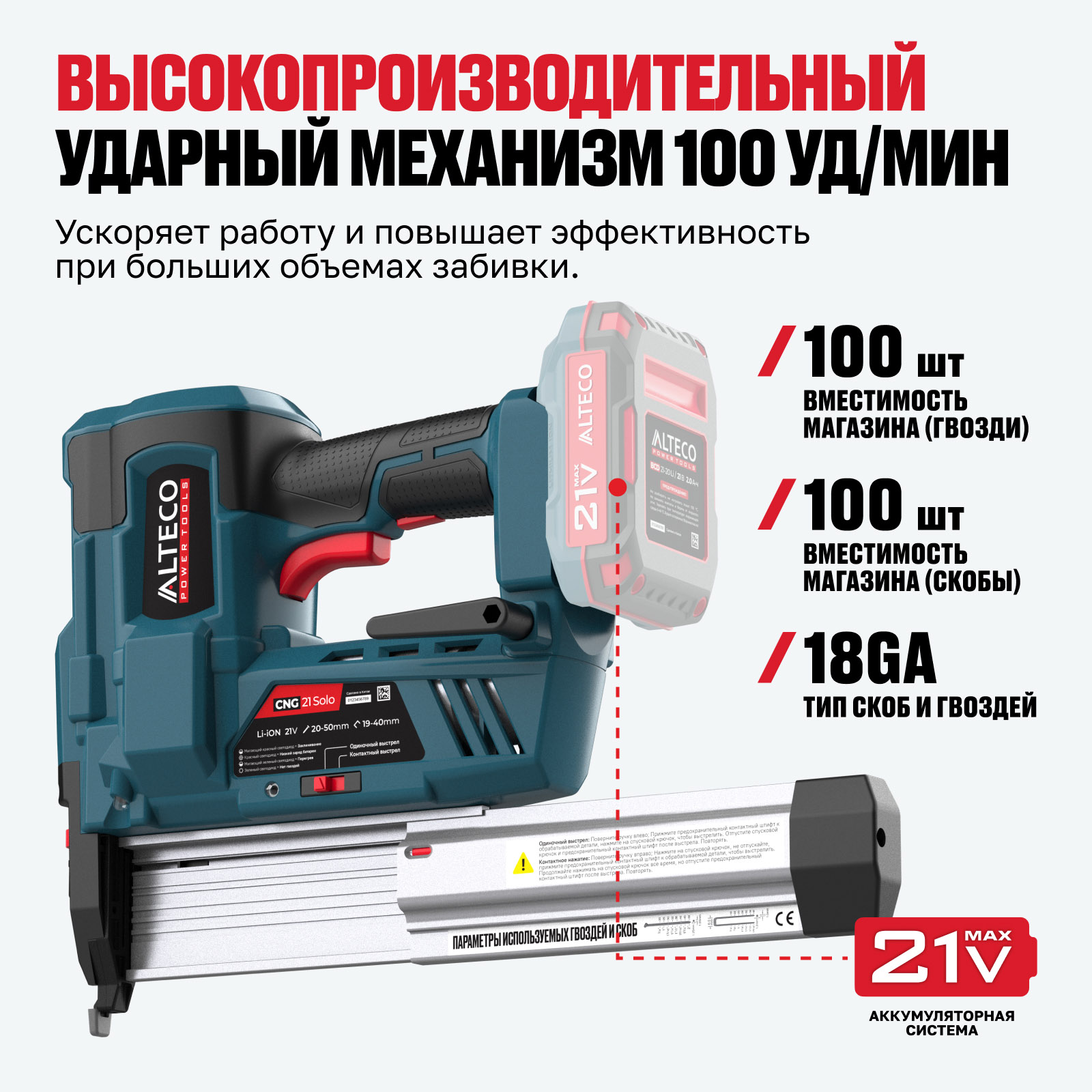 - Часть единой аккумуляторной системы ALTECO 21Vmax — один аккумулятор подходит для всех инструментов этой серии, обеспечивая удобство, экономию и гибкость в работе.