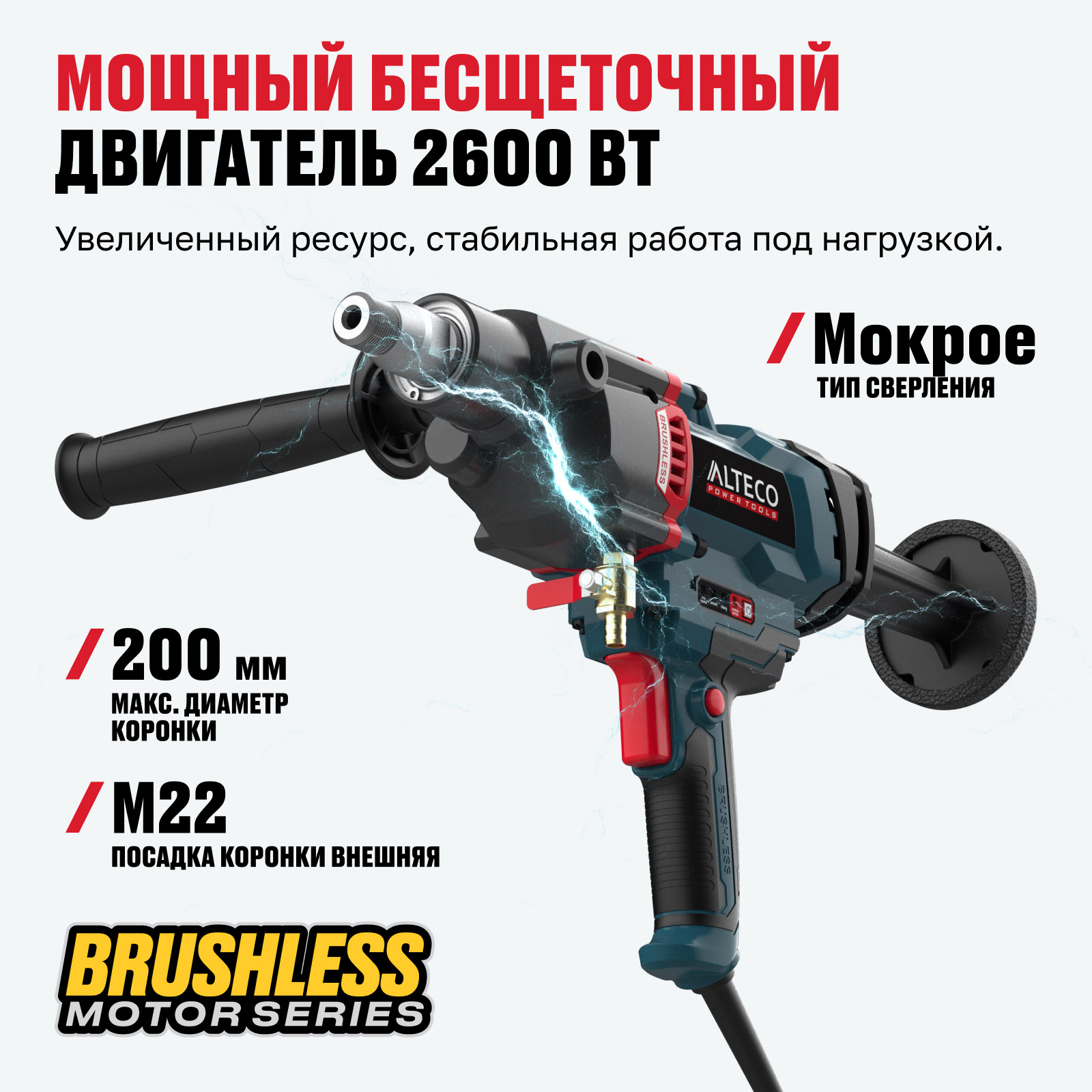 - Диаметр коронки до 200 мм — позволяет выполнять широкий спектр профессиональных задач.