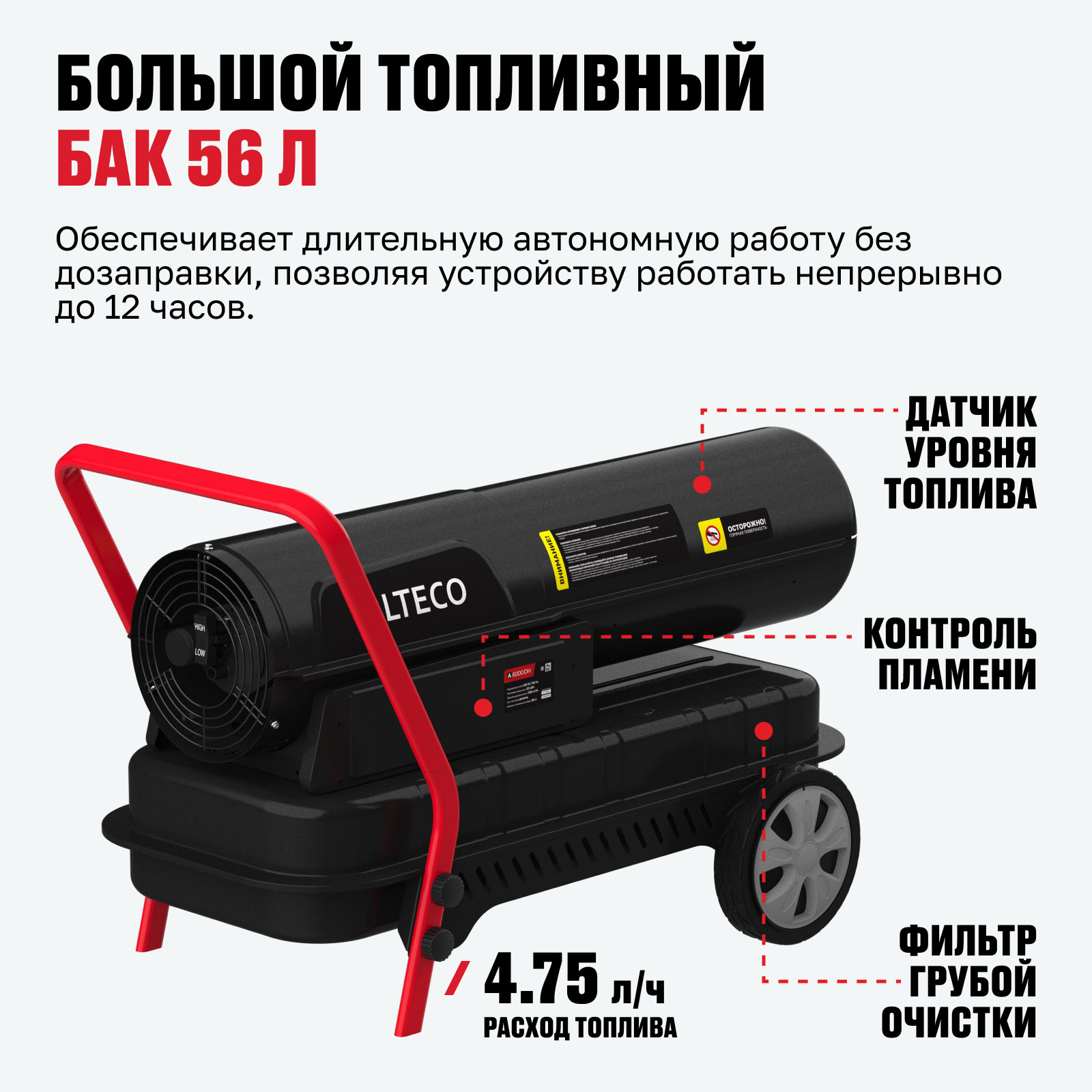 - Большой топливный бак 56 л — обеспечивает длительную автономную работу без дозаправки, позволяя устройству работать непрерывно до 12 часов.