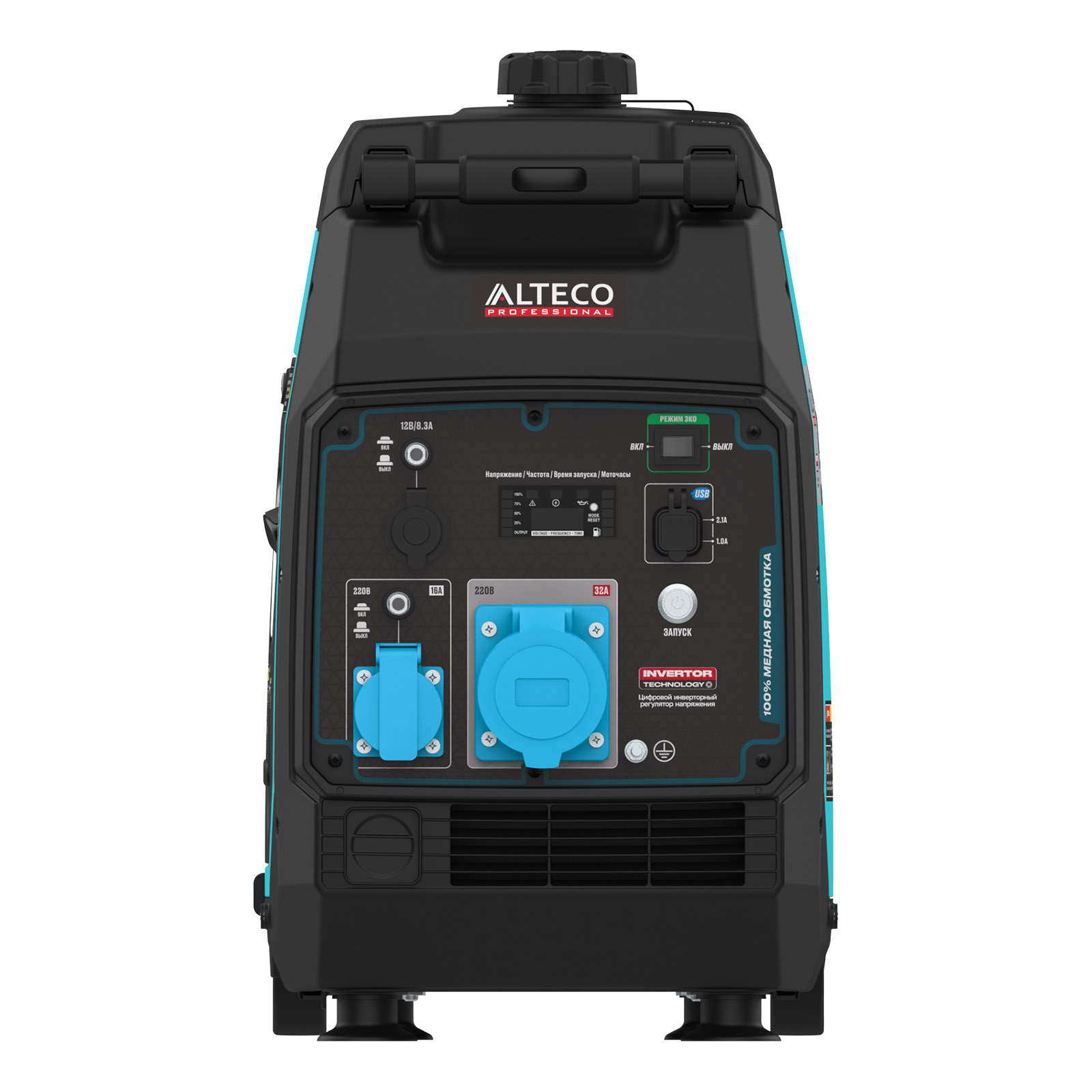 - Компактность и малый вес — заметно легче и компактнее классических портативных генераторов, удобен для транспортировки и хранения.- Электронный индикатор